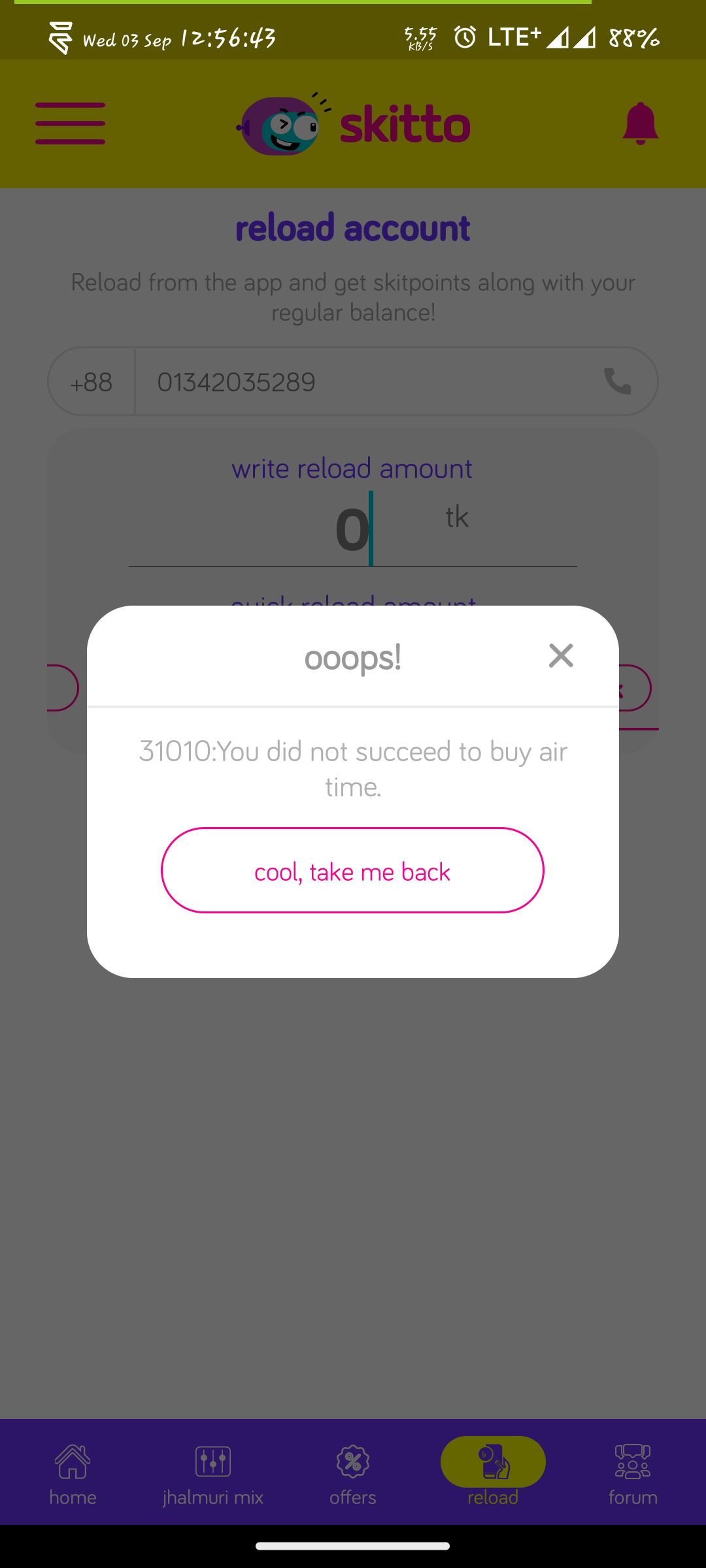 same issue again money deducted from rocket but recharge failed.  what's wrong with skitto?